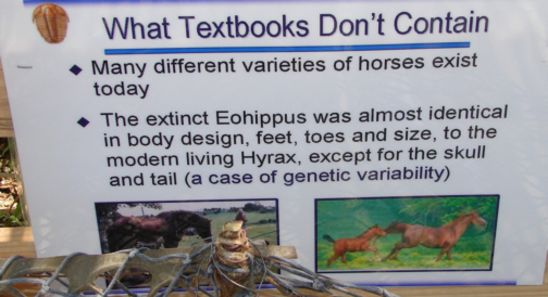 However using this misspelling I was able to trace this sign to creationist slide presentations found in several places on the internet. After going through the slide presentation I found that indeed several of the signs posted in the attraction —including the one on Eohippus we’ve already covered—seem to have originated there. They literally just printed the slides onto paper and stuck them up.