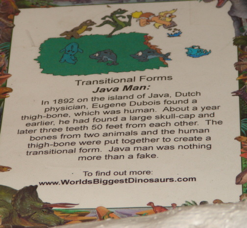 On one sign they confidently declare that “Java Man was nothing more than a fake”: