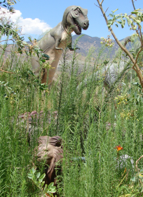 Above is another of the smaller Tyrannosaurus models but note the figures hidden in the weeds at the bottom of the picture.