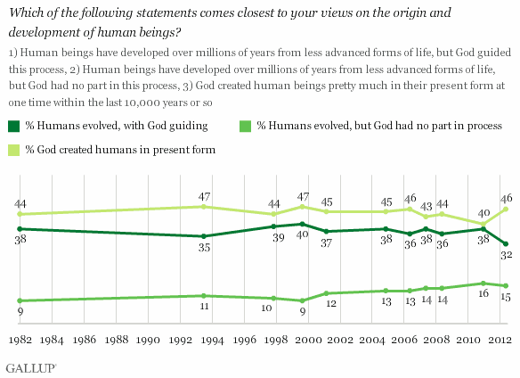 The problem with this analysis [Lehrer’s attempt to explain rampant evolution denial in the U.S. – T.B.] is that we are familiar, from long experience, with a no less impressively obdurate ignorance on the part of Darwin’s believers. No doubt there are plenty of people who reject Darwinism on the basis of a gut response alone, who never have taken the time to probe the evolution controversy and who fail to realize that it has two sides, both of which have a case to make.
